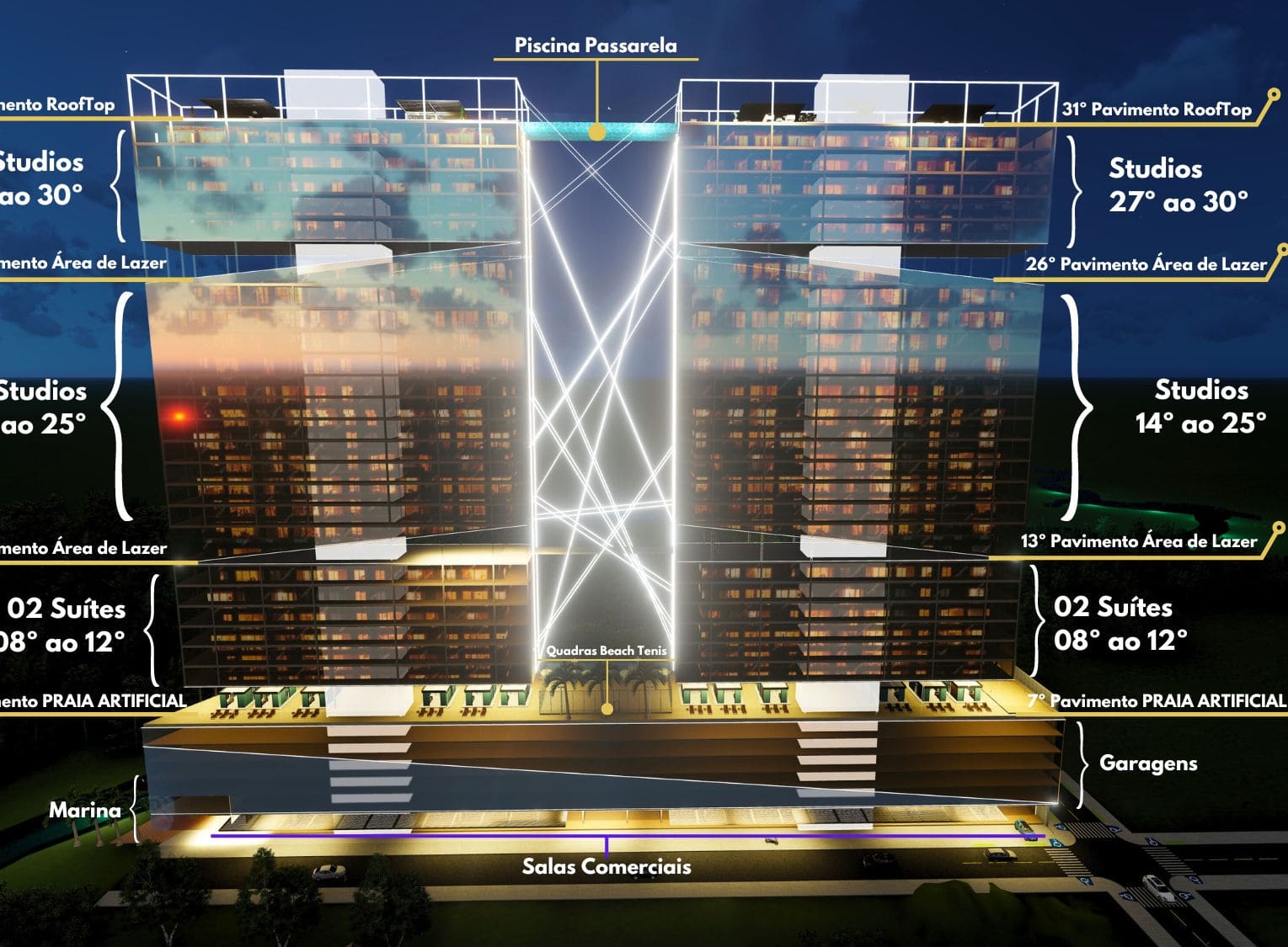 Bem-vindo ao Sky Marine Towers, um empreendimento que redefine o conceito de vida urbana com uma vista privilegiada. Prepare-se para explorar um mundo de comodidades e experiências exclusivas. Vamos navegar pelos detalhes que tornam o Sky Marine Towers tão especial: