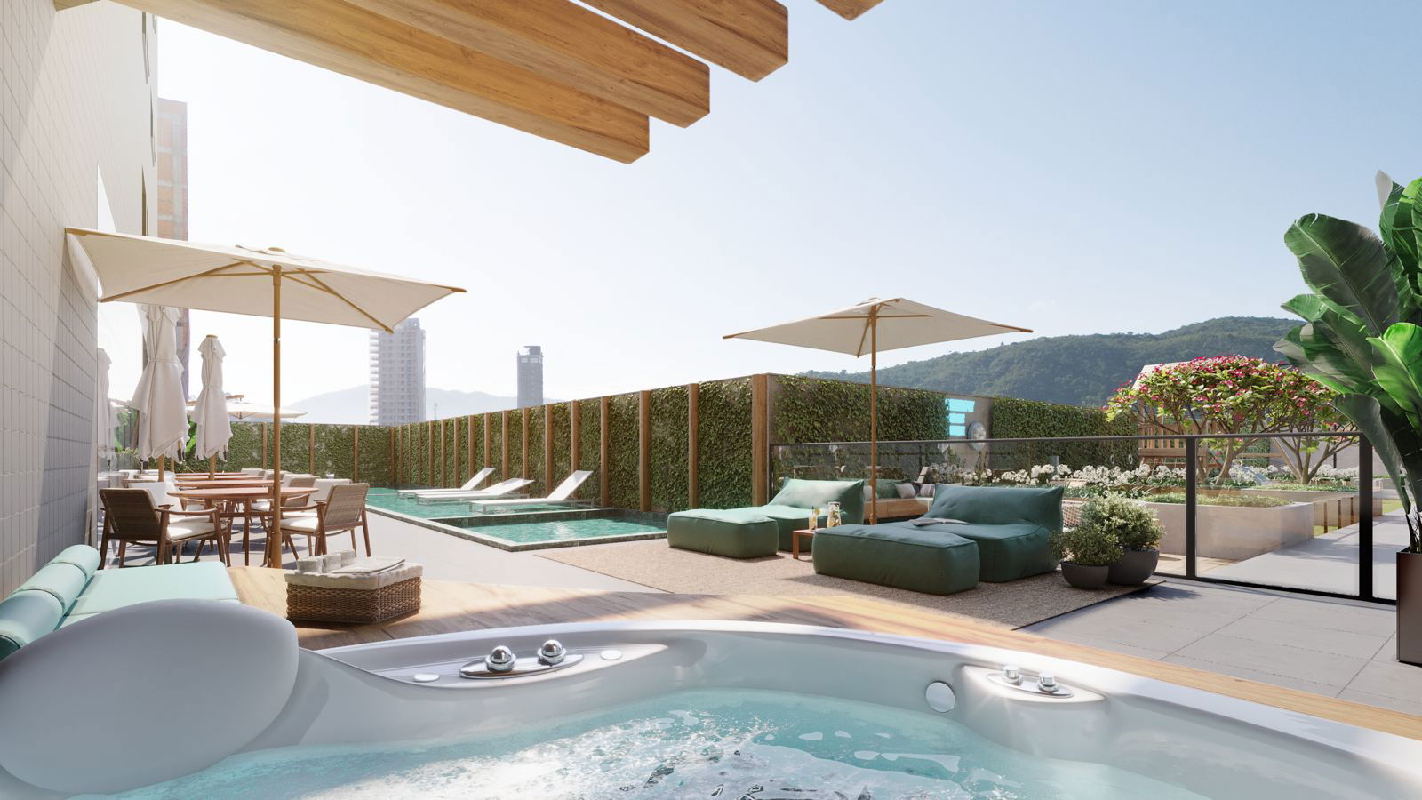 • Hidromassagem na Piscina: Mergulhe em águas aquecidas e revigorantes.